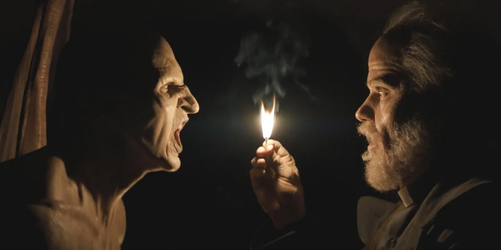 During the following carnage on Crockett Island, the creature sheds the chasuble and joins the massacre, breaking into houses and abducting people to feed on. Warren Flynn and Leeza Scarborough sought shelter in the abandoned house where the "angel“ resided, and discovered it draining villagers among the dead bodies of former victims. Leeza shot it twice, to little effect - the creature seemed to regard the bullets as little more than a nuisance. The teens then douse the distracted creature in gasoline and lit the entire building on fire, forcing the burning angel to flee into the night sky. When Erin was about to ignite the Community Hall, the last place for the vampiric congregation of the island to hide from the upcoming sun, on fire, the "angel“ swooped down from the sky and began feeding on her in front of the turned people and Sheriff Hassan. Erin used this opportunity to slice the wings of the angel with her knife, pulling it back to her neck when it turned its attention to the wounds she carved in its wings. It was not until after drinking its fill that the "angel“ noticed its wings shredded wings, leading it to scream in fury at Erin and clumsily attempt to fly off. While Ali carried his fatally wounded father through the inferno to the beach, the angel is seen struggling to fly and crashing into the burning buildings. Warren and Leeza, who ventured out to the sea on a paddle boat, witnessed the "angel“ fleeing the island to the west, attempting to outrun the rising sun. Warren doubted that it would make the thirty-mile trip on time, due to it being barely able to fly. When the sun rose and killed the vampiric population of the island, Leeza noticed the loss of feeling in her legs, likely due to the "angel“ having perished as well.