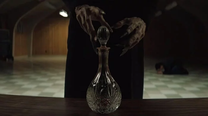 While the people of Crockett island still grappled with the mysterious slaughter of its stray cat population, the arrival of the seemingly new priest Father Paul and the killing of Joe Collie's dog on Ash Wednesday, the angel took shelter in an abandoned house and lured local drug dealer Bowl into its new lair by mimicking his voice, before ultimately preying on him. In the following weeks, various inhabitants of Crockett Island had nightly encounters with the angel, including Erin Greene, who heard the creature crawling on her roof, before seeing it obscured by the dark from her bathroom window. When Sheriff Hassan talked with his son Ali about the recent religious fervor that befell the island following the apparent miracles in the St. Patrick’s church, Hassan briefly caught a glimpse of the angel in the window of his son's room, when turning off the lights. When Father Paul, aka Monsignor Pruitt, died and came back to life as a vampire, he struggled with his transformation and the pain that accompanied it, as well as his urge to consume blood, causing Pruitt to call his "angel“ back to him. Following his first feeding on another human being, Joe Collie, Pruitt ran out of vampiric blood to mix into the communion. His frantic prayers eventually prompted the angel to return to the community hall of Crockett Island. After signaled for Pruitt to be silent, it opened up its vein and bled into the communion vial. Riley Flynn showed up at the community hall to confront Pruitt about his lies regarding Joe Collie's disappearance, leading him to witness the creature for himself. Without hesitation, the creature flung itself at Riley and immediately began feeding on him, while Pruitt closed the doors of the hall, so that nobody would witness the horror.